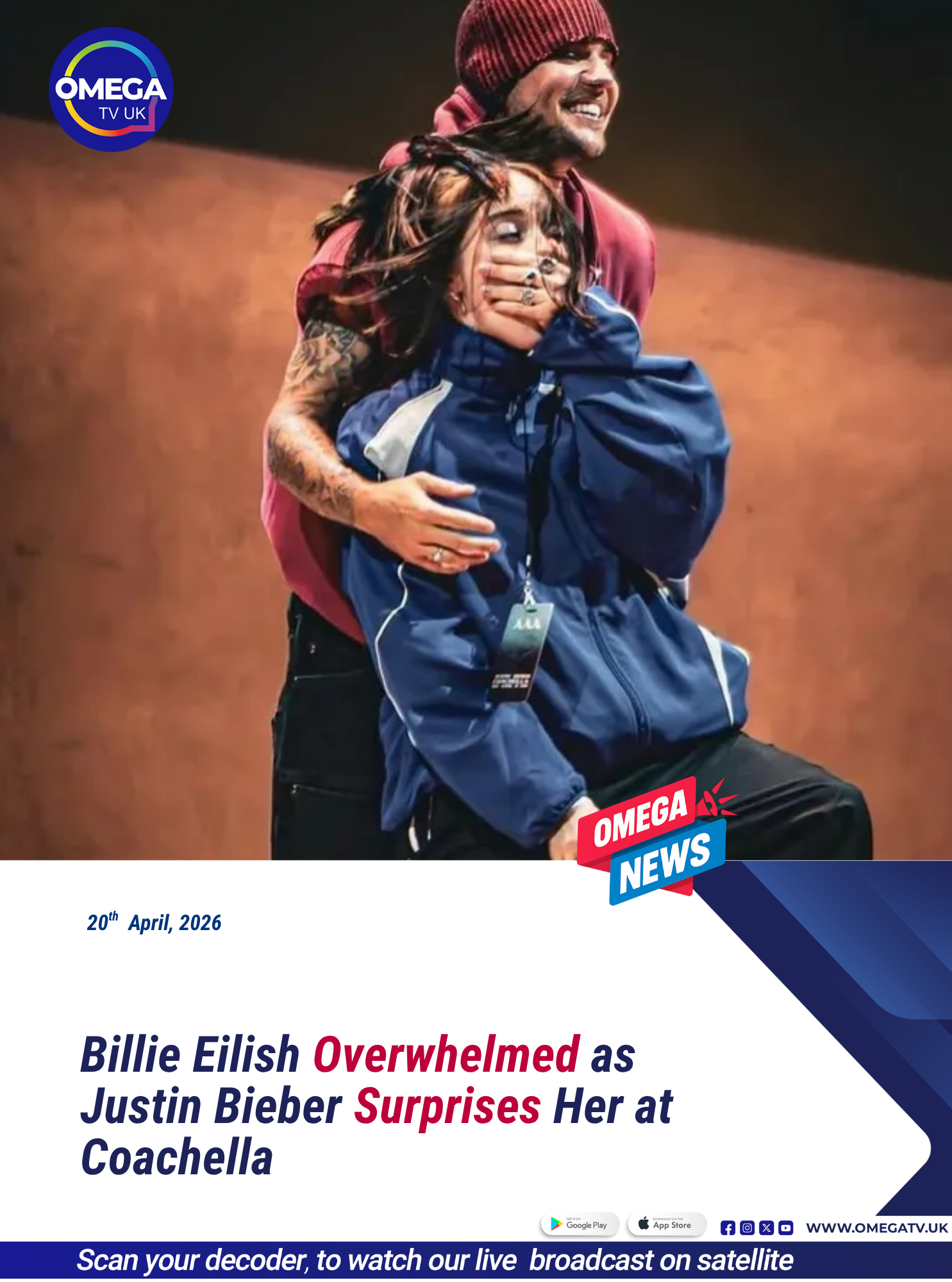 A surprise appearance involving Billie Eilish and Justin Bieber has become one of the most talked-about highlights of Coachella 2026, after an emotional on-stage moment left the singer overwhelmed.