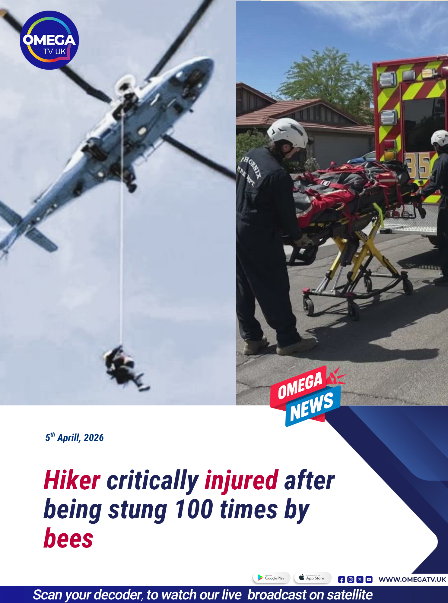 Rescue teams from the Phoenix Fire Department responded swiftly, dispatching a helicopter to the scene. The hiker was airlifted to safety using a winch system before being transferred to an ambulance and rushed to hospital. Authorities say he remains in a critical condition and is fighting for his life.