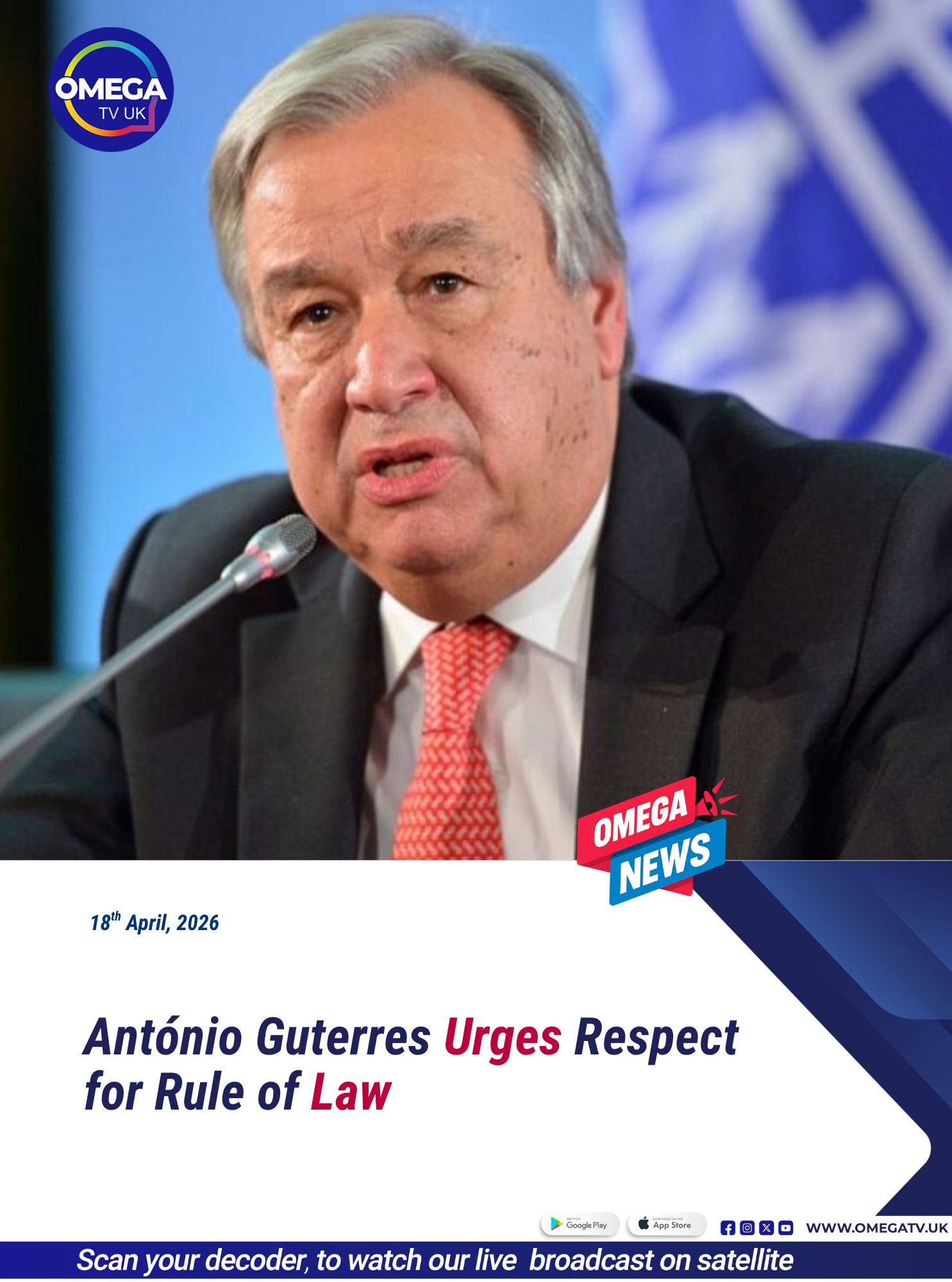 Speaking at the 80th anniversary of the International Court of Justice in The Hague, Guterres urged world leaders to recommit to the rule of law, warning that failure to do so could lead to greater instability and widespread consequences.