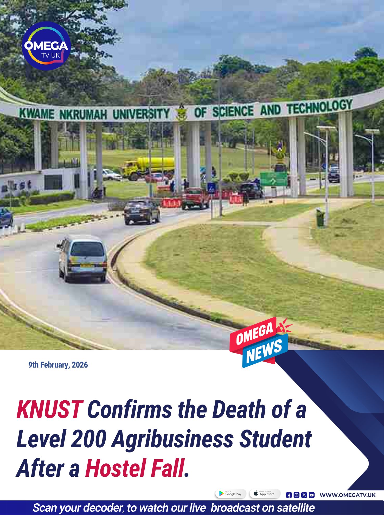 The Kwame Nkrumah University of Science and Technology (KNUST) has been thrown into mourning following the tragic death of a second‑year student, Ransford Amankwah Asomani, who reportedly fell from the second floor of an off‑campus hostel at Ayeduase in the early hours of Sunday, 8 February 2026.