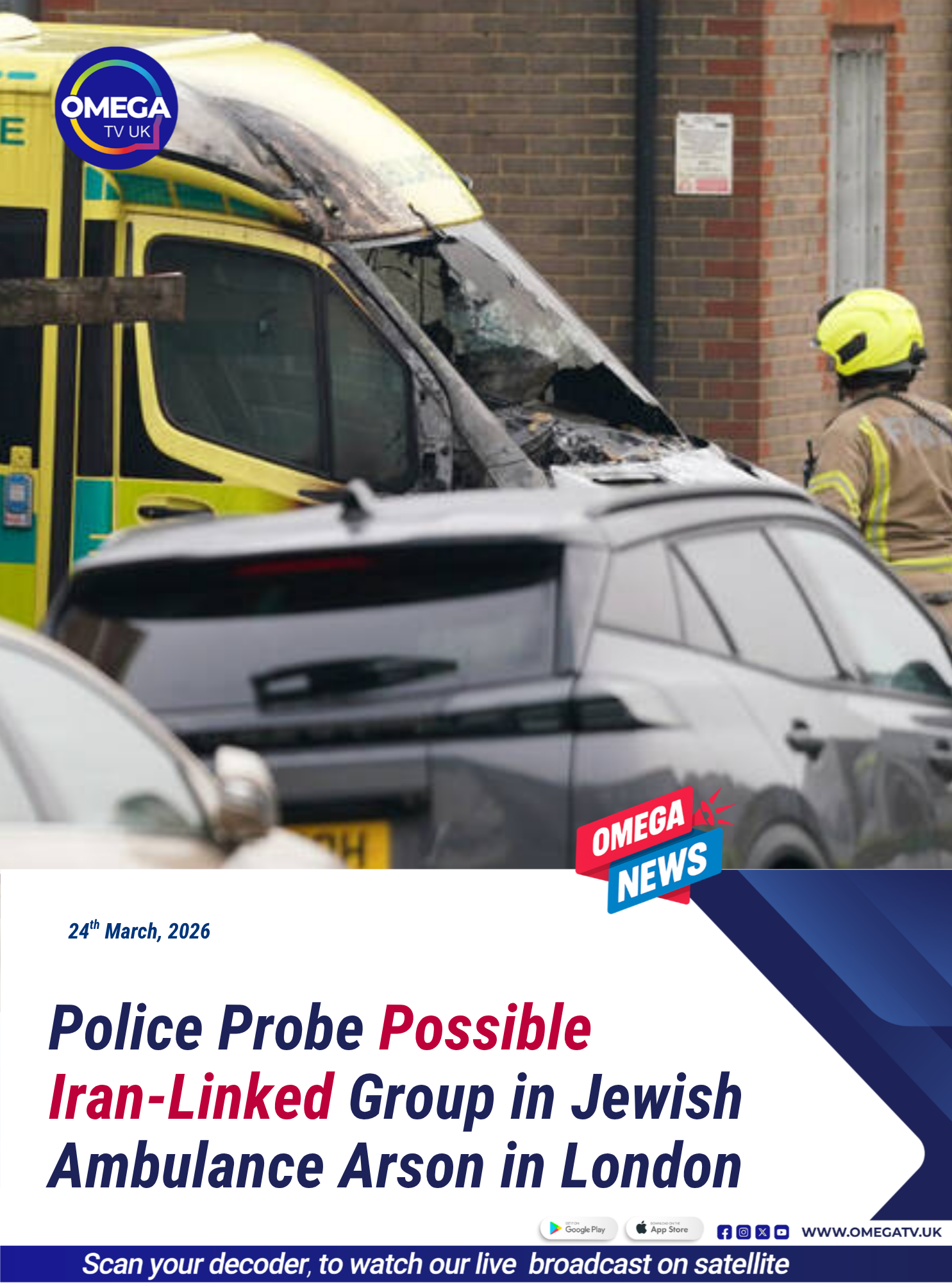 Police in London are investigating a possible Iran-linked group in connection with an arson attack targeting Jewish charity-owned ambulances in Golders Green. Four Hatzola ambulances were set ablaze in the early hours of Monday, triggering several explosions caused by gas canisters onboard.