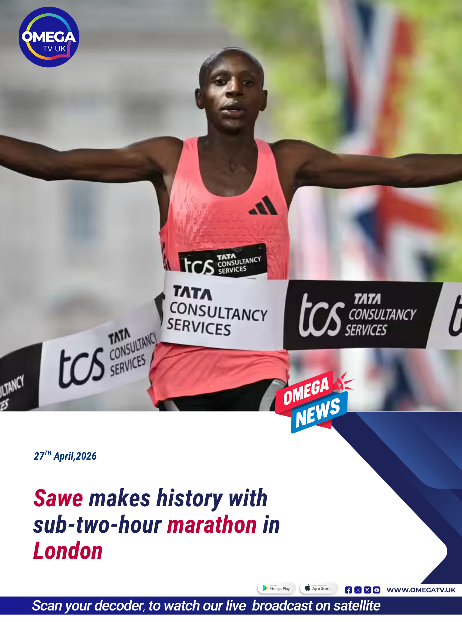 Kenya’s Sabastian Sawe has made sporting history after becoming the first athlete to complete an official marathon in under two hours, breaking one of long-distance running’s most iconic barriers at the London Marathon.