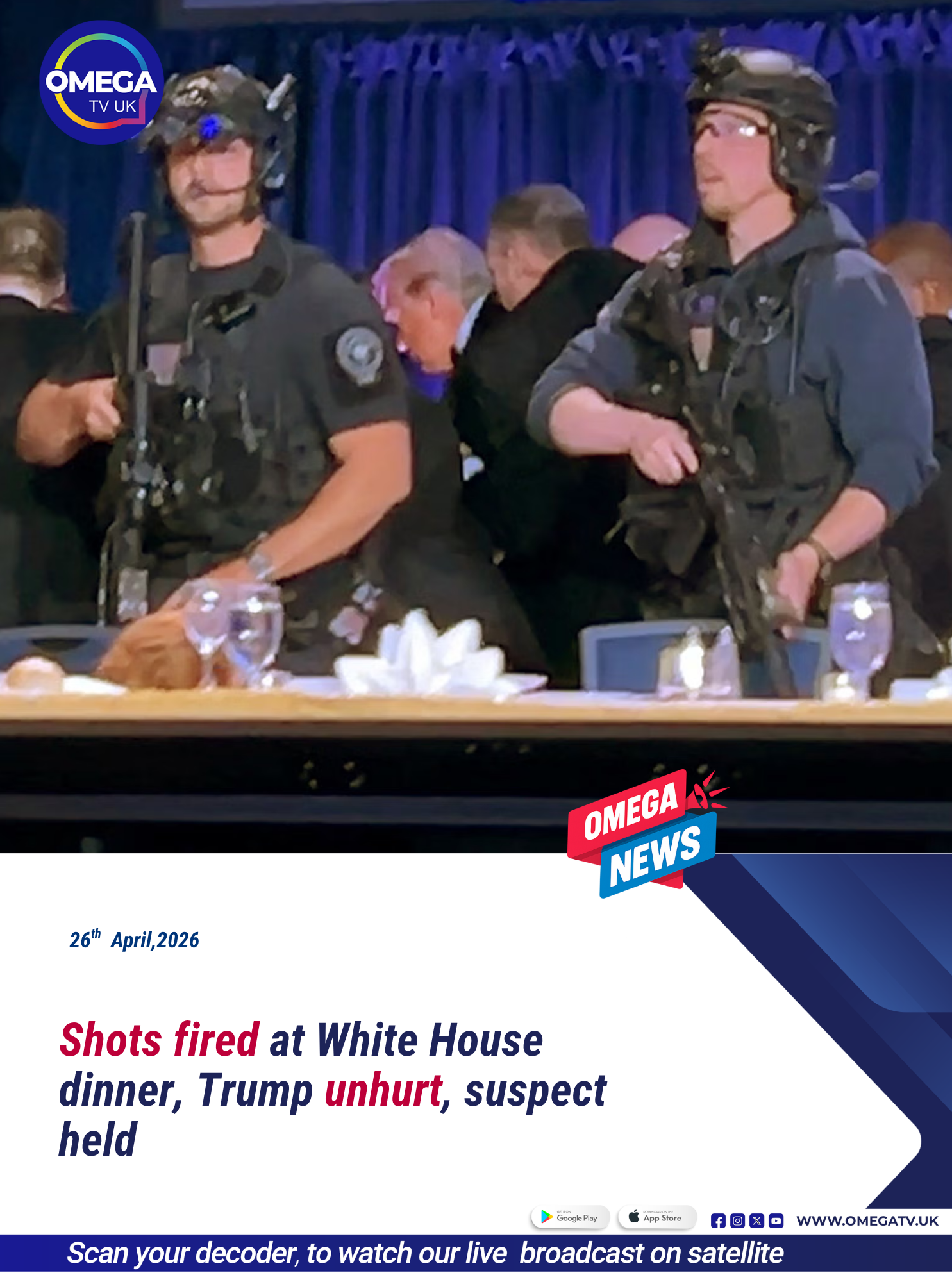 US President Donald Trump is safe after gunshots were fired during the White House Correspondents’ Dinner, triggering panic and a swift security response.